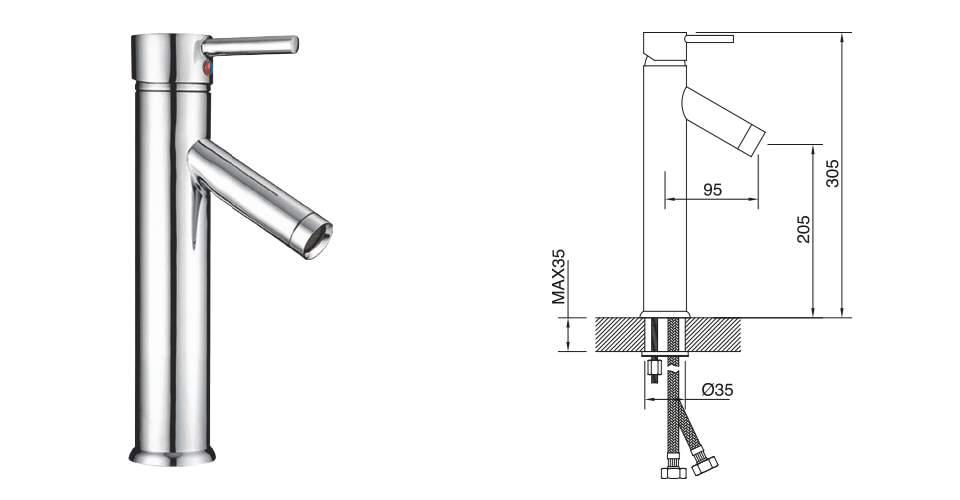Monocomando Lavatorio Alto 40 Vector